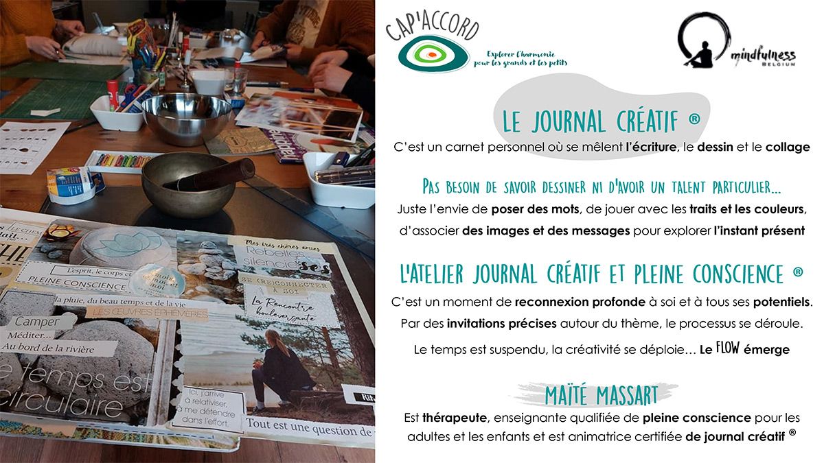 Concrètement, par des méditations guidées, par des approches expérientielles et en utilisant la méthode du journal créatif ®, différents aspects de la pleine conscience seront abordés...Une façon unique, variée et ludique de se l'approprier au quotidien.